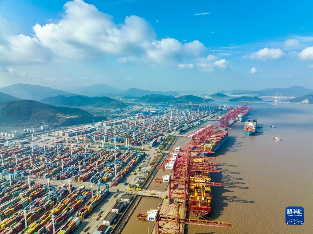 這是浙江寧波舟山港穿山港區(qū)(2021年12月24日攝,無人機照片)。新華社發(fā)(湯健凱 攝)