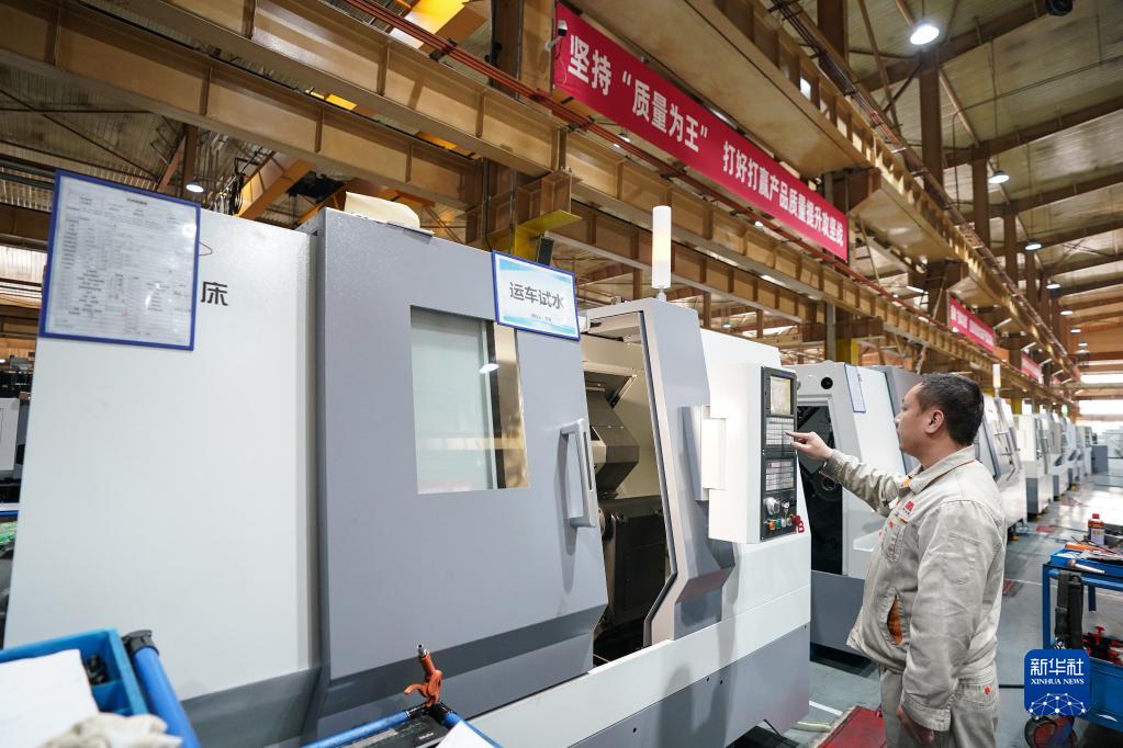 通用技術(shù)集團沈陽機床的工人在車間工作(2月14日攝)。新華社記者 潘昱龍 攝