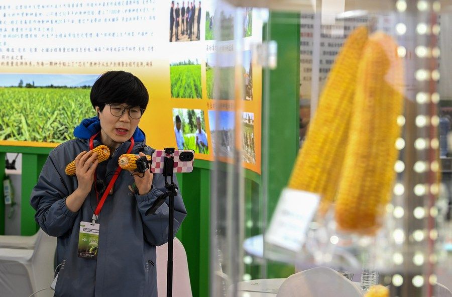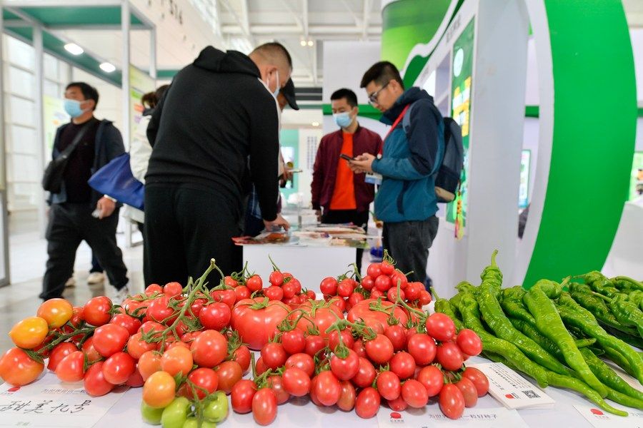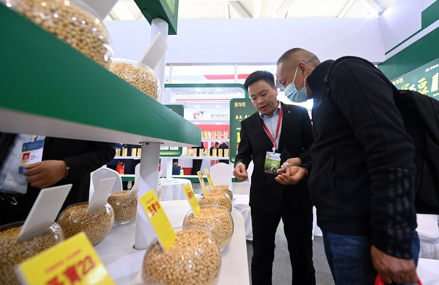 3月18日,參觀者和展商在展會上交流。當日,第十四屆中國國際種業(yè)博覽會暨第十九屆全國種子信息交流與產品交易會在天津市開幕。新華社記者 趙子碩 攝