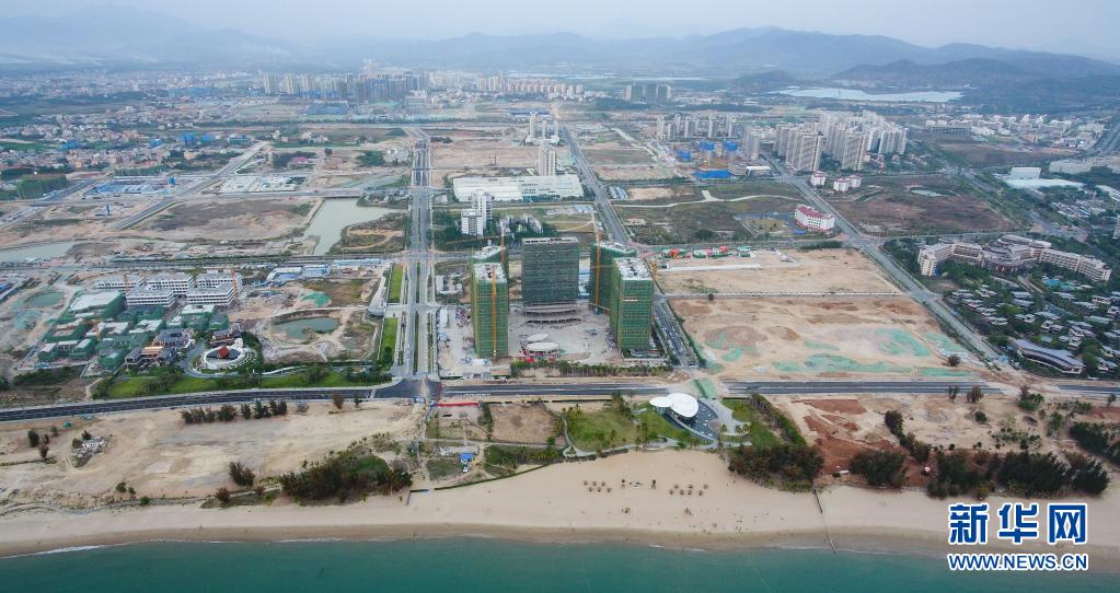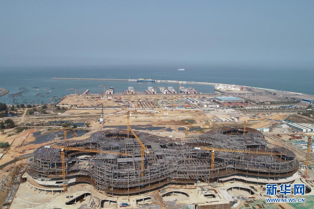 這是2月20日拍攝的??趪H免稅城項(xiàng)目施工現(xiàn)場(無人機(jī)照片)。新華社記者 張麗蕓 攝