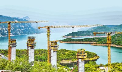 4月17日,中鐵四局的建設者在濟(源)新(安)高速公路黃河北岸的濟源示范區(qū)桃花島大橋建設工地施工。該高速公路是河南省高速公路“13445工程”重點建設項目之一,全長47.961公里,起于濟源示范區(qū)邵原鎮(zhèn),向南跨越黃河,止于洛陽市新安縣鐵門鎮(zhèn)。苗秋鬧 攝