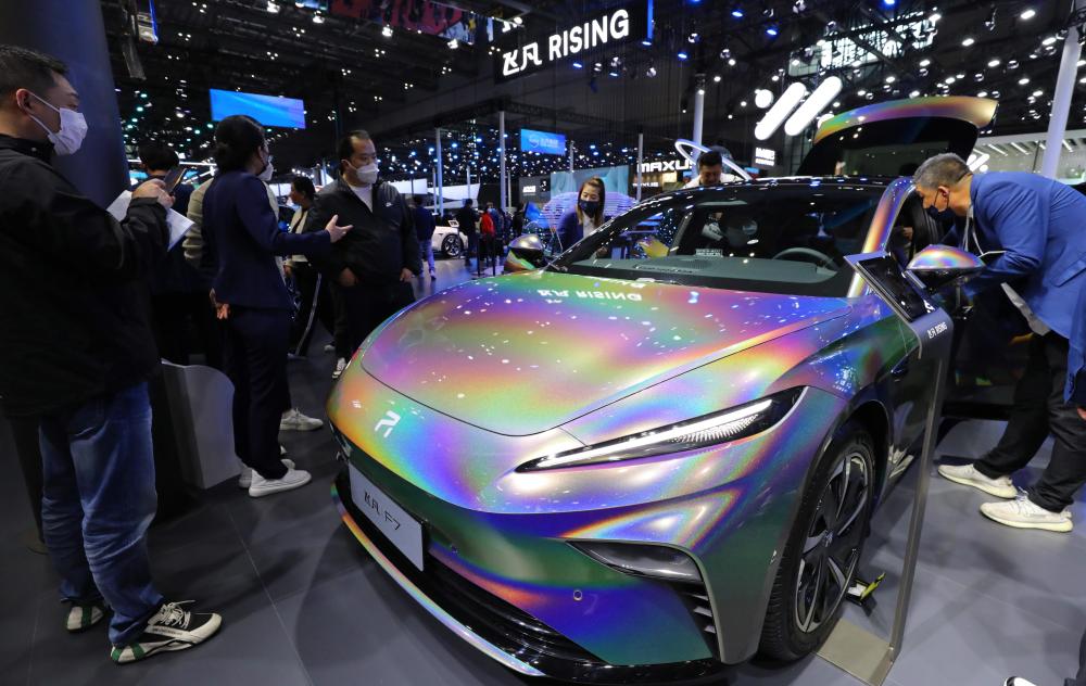 4月24日,參觀者在2023第二十屆上海國(guó)際汽車工業(yè)展覽會(huì)飛凡F7展車邊駐足觀看。新華社記者 方喆 攝
