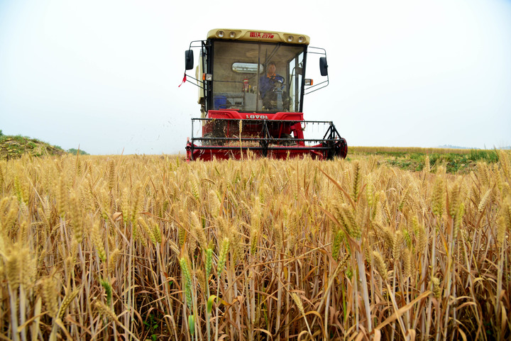 小滿過(guò)后,豐收在即。5月25日,在安徽壽縣小甸鎮(zhèn)楊圩村,36臺(tái)聯(lián)合收割機(jī)齊下田,隨著齒輪轉(zhuǎn)動(dòng),2萬(wàn)多畝麥田正式開(kāi)鐮收割。“今年,我們麥田實(shí)行網(wǎng)格化管理,種子、化肥等農(nóng)資統(tǒng)一供應(yīng),麥子成熟時(shí)公司統(tǒng)一安排機(jī)械收割并對(duì)外掛網(wǎng)銷售?!毙←溚泄芙?jīng)營(yíng)者張宇說(shuō)。