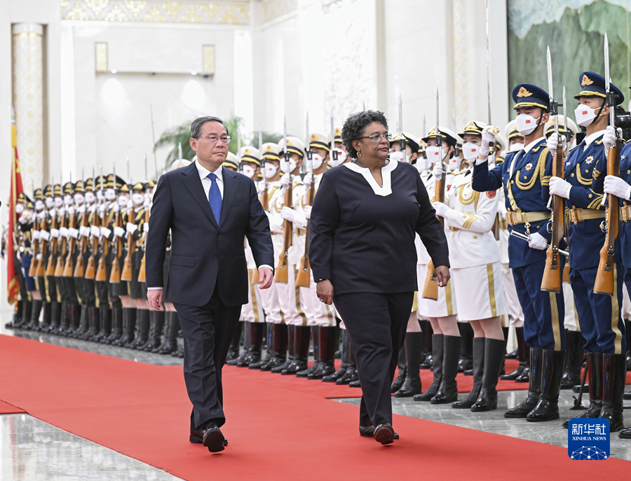 6月25日下午,國務院總理李強在北京人民大會堂同來華進行正式訪問的巴巴多斯總理莫特利會談。這是會談前,李強在人民大會堂北大廳為莫特利舉行歡迎儀式。新華社記者 張領 攝