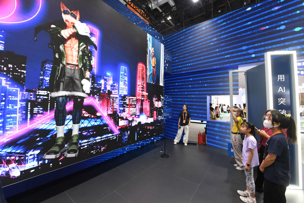 9月3日,一名參觀者在首鋼園中國(guó)移動(dòng)展臺(tái)體驗(yàn)基于AR/VR特效的敦煌導(dǎo)覽,沉浸式感受敦煌壁畫的魅力。新華社記者 李鑫 攝