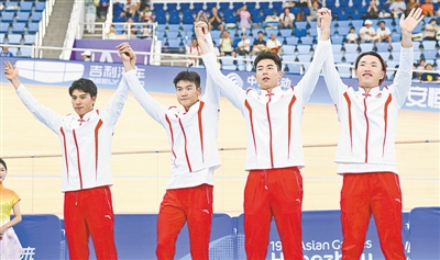 ??昨天,亞運(yùn)會(huì)場(chǎng)地自行車比賽在淳安界首體育中心自行車館繼續(xù)進(jìn)行,河南選手楊陽和隊(duì)友一起出戰(zhàn)男子自行車4公里團(tuán)體追逐賽,以3分56秒277的成績(jī)獲得亞軍,金牌被日本選手奪得。