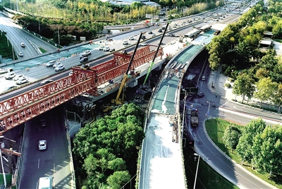 ??同時,黃河路立交西向南匝道以及集散車道南段的鋼箱梁也完成架設(shè)和焊接,正在緊張地施工防撞墻和橋面鋪裝,預計11月下旬完成改造通車。