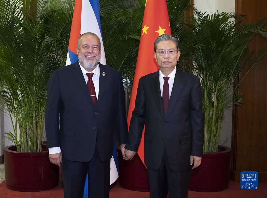 11月6日,全國(guó)人大常委會(huì)委員長(zhǎng)趙樂際在北京會(huì)見古巴總理馬雷羅。新華社記者 李濤 攝