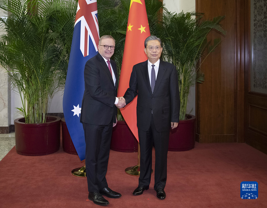 11月6日,全國(guó)人大常委會(huì)委員長(zhǎng)趙樂際在北京會(huì)見澳大利亞總理阿爾巴尼斯。新華社記者 李濤 攝
