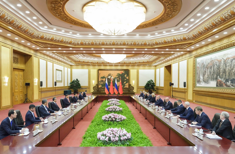 習(xí)近平強(qiáng)調(diào),中國經(jīng)濟(jì)韌性強(qiáng)、潛力大、回旋余地廣、長期向好的基本面沒有改變。中國堅(jiān)定推動(dòng)高質(zhì)量發(fā)展,推進(jìn)高水平對外開放,將為包括俄羅斯在內(nèi)的各國發(fā)展提供新機(jī)遇。雙方要充分發(fā)揮政治互信、經(jīng)濟(jì)互補(bǔ)、設(shè)施互聯(lián)、民心互通優(yōu)勢,不斷豐富合作內(nèi)涵,深化經(jīng)貿(mào)、能源、互聯(lián)互通等領(lǐng)域合作,共同維護(hù)產(chǎn)業(yè)鏈供應(yīng)鏈安全穩(wěn)定。雙方要辦好明后兩年中俄文化年,多設(shè)計(jì)、多開展豐富多彩的人文交流活動(dòng),夯實(shí)兩國世代友好的社會(huì)和民意基礎(chǔ)。