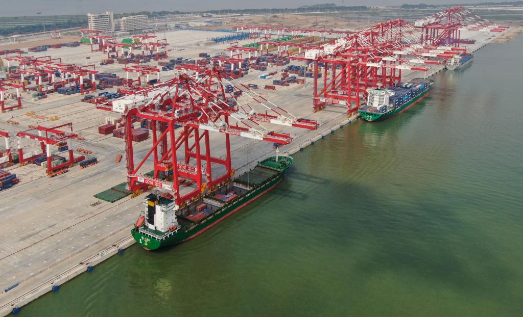 這是2022年7月28日拍攝的廣州港南沙港區(qū)四期全自動化碼頭(無人機照片)。新華社記者鄧華攝