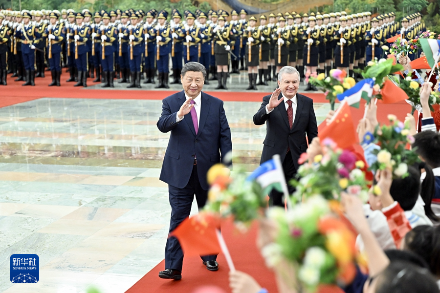 ??1月24日下午,國(guó)家主席習(xí)近平在北京人民大會(huì)堂同來(lái)華進(jìn)行國(guó)事訪問(wèn)的烏茲別克斯坦總統(tǒng)米爾濟(jì)約耶夫舉行會(huì)談。這是會(huì)談前,習(xí)近平在人民大會(huì)堂北大廳為米爾濟(jì)約耶夫舉行歡迎儀式。新華社記者 殷博古 攝