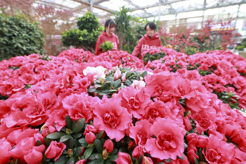 2024年2月8日,市民在河北省唐山市豐南區(qū)一處花卉市場(chǎng)選購(gòu)鮮花。新華社發(fā)(李秀清 攝)