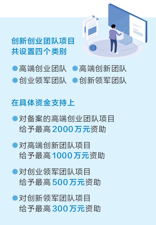 據(jù)介紹,創(chuàng)新創(chuàng)業(yè)團隊項目共設(shè)置高端創(chuàng)業(yè)團隊、高端創(chuàng)新團隊、創(chuàng)業(yè)領(lǐng)軍團隊、創(chuàng)新領(lǐng)軍團隊四個類別。