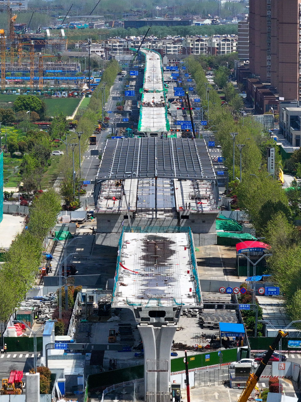 ??南京至馬鞍山市域(郊)鐵路全長約54.23公里,共設站16座。項目建成后,兩市中心城區(qū)僅需30分鐘即可互通互達。這是2024年4月9日在南京拍攝的該鐵路工程項目建設現(xiàn)場(無人機照片)。
