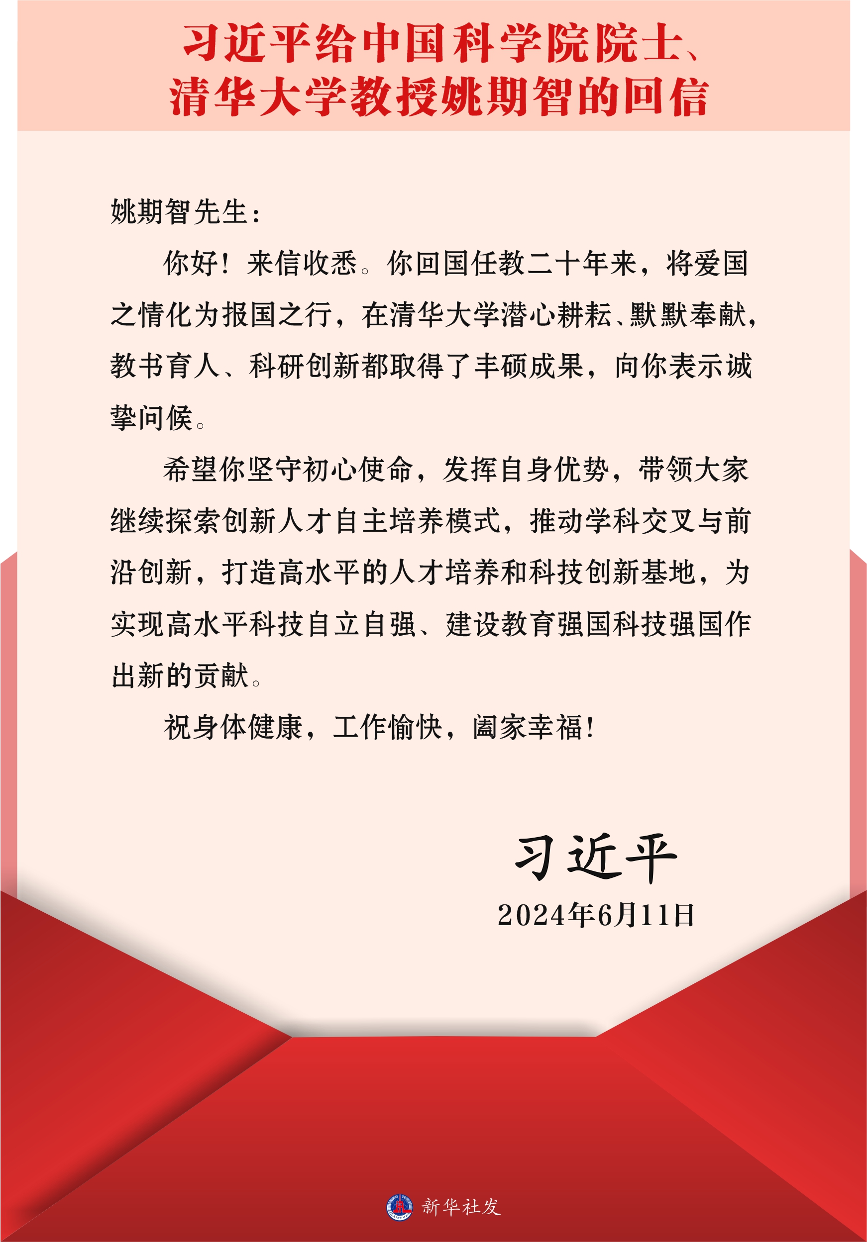 ??新華社北京6月12日電 近日,中共中央總書記、國家主席、中央軍委主席習(xí)近平給中國科學(xué)院院士、清華大學(xué)教授姚期智回信,向他致以誠摯問候并提出殷切希望。
