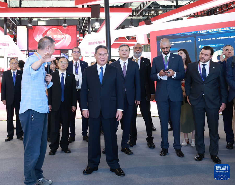 ??7月4日,國務(wù)院總理李強在上海出席2024世界人工智能大會暨人工智能全球治理高級別會議開幕式并致辭。這是開幕式后,李強同與會外方嘉賓、國際組織代表共同巡館。新華社記者 王曄 攝