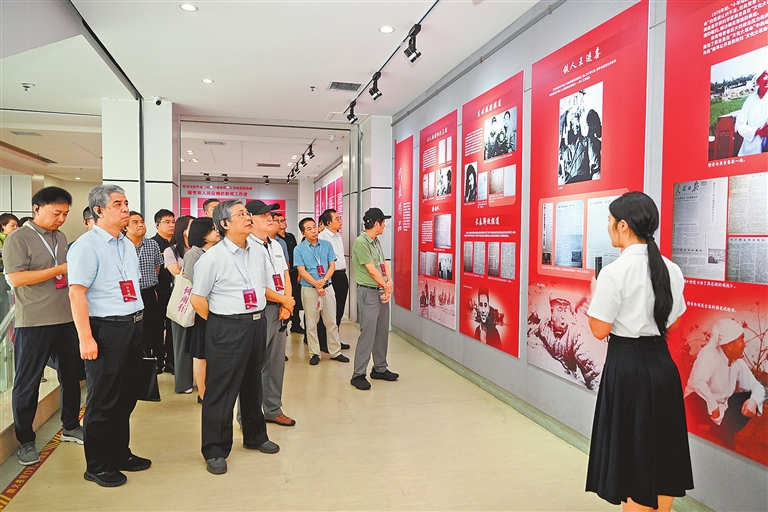 7月30日,全國多地的經(jīng)濟(jì)媒體負(fù)責(zé)人來到河南開封科技傳媒學(xué)院,參觀“勿忘人民——學(xué)習(xí)穆青、增強(qiáng)‘四力’”主題展。 河南日報(bào)社全媒體記者 朱哲 攝