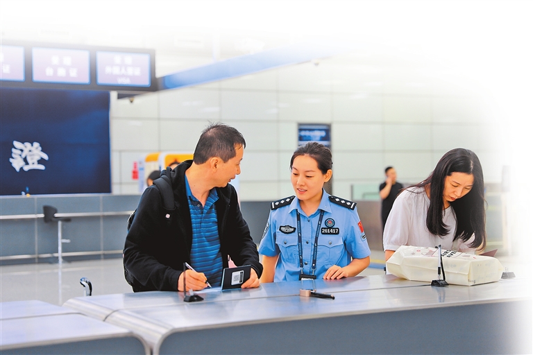 鄭州出入境邊防檢查站民警在引導(dǎo)旅客填寫(xiě)外國(guó)人入境卡。 謝文長(zhǎng) 攝