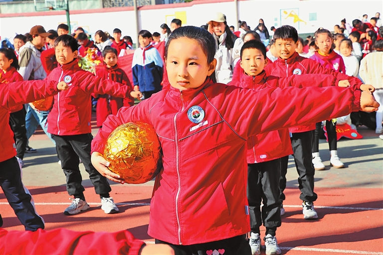 10月24日,焦作市解放區(qū)幸福街小學(xué)學(xué)生正伴隨著音樂跳自編的韻律操。自秋季新學(xué)期開學(xué)以來,該區(qū)開展形式多樣、內(nèi)容豐富的特色體育教學(xué)活動,自編自創(chuàng)體育活動項目,讓學(xué)生們通過別樣的體育活動強健體魄。李良貴 攝