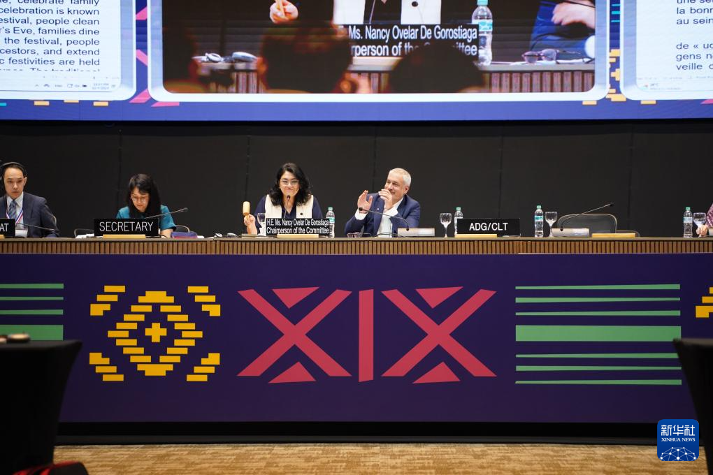 ??這是12月4日在巴拉圭亞松森拍攝的聯(lián)合國教科文組織保護非物質文化遺產(chǎn)政府間委員會第19屆常會評審現(xiàn)場。新華社記者 朱雨博 攝