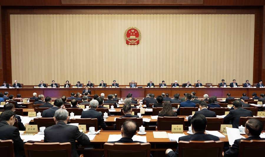 ??12月22日上午,十四屆全國人大常委會(huì)第十三次會(huì)議在北京人民大會(huì)堂舉行第二次全體會(huì)議。趙樂際委員長出席。新華社記者 李濤 攝